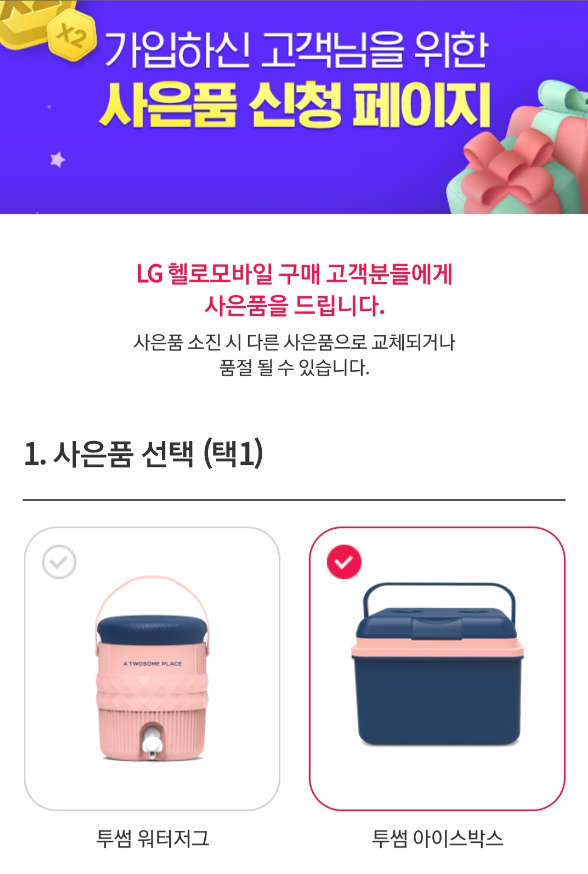 사은품 중에서 투썸 아이스박스 받을 수 있으면 좋겠는데, 고를 수 있다고 써있긴 한데 모르겠다.