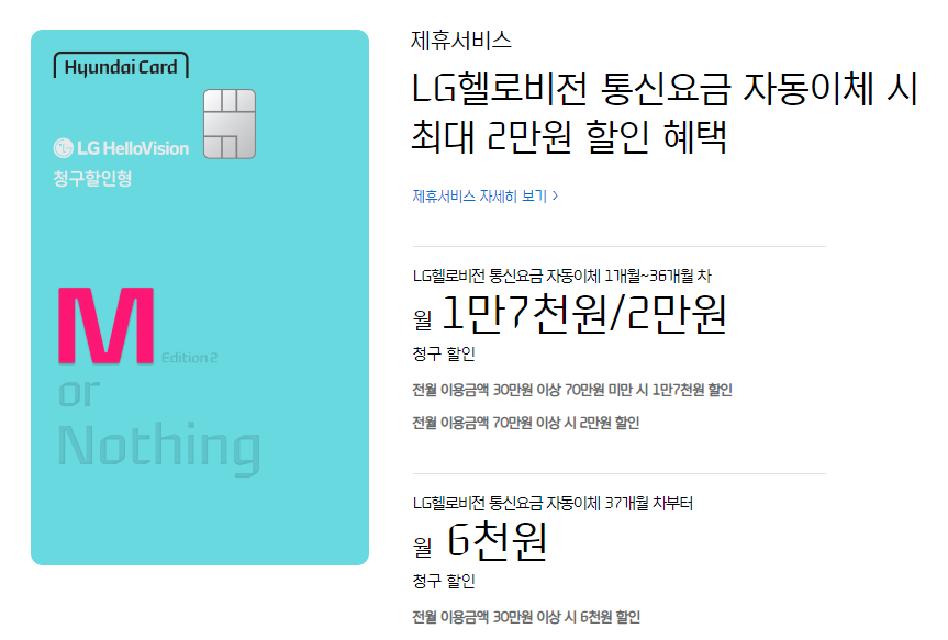 딱 30만원 정도 썼을 때 월 17000원씩 할인되는건 꽤나 괜찮은 조건이다.