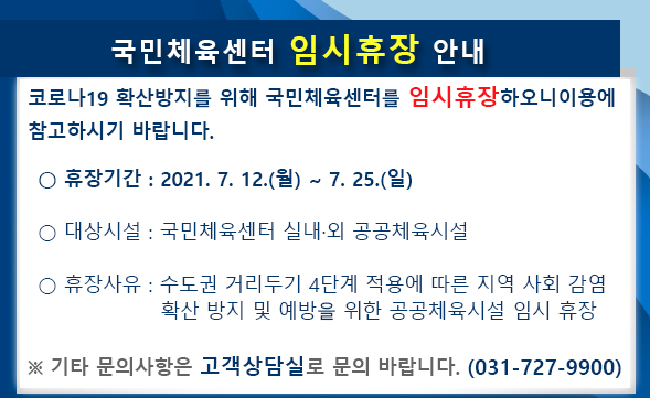 거리두기 4단계 격상으로 인해 성남시에서 운영하는 모든 체육센터가 임시휴장에 들어갔다.. ㅠㅠ