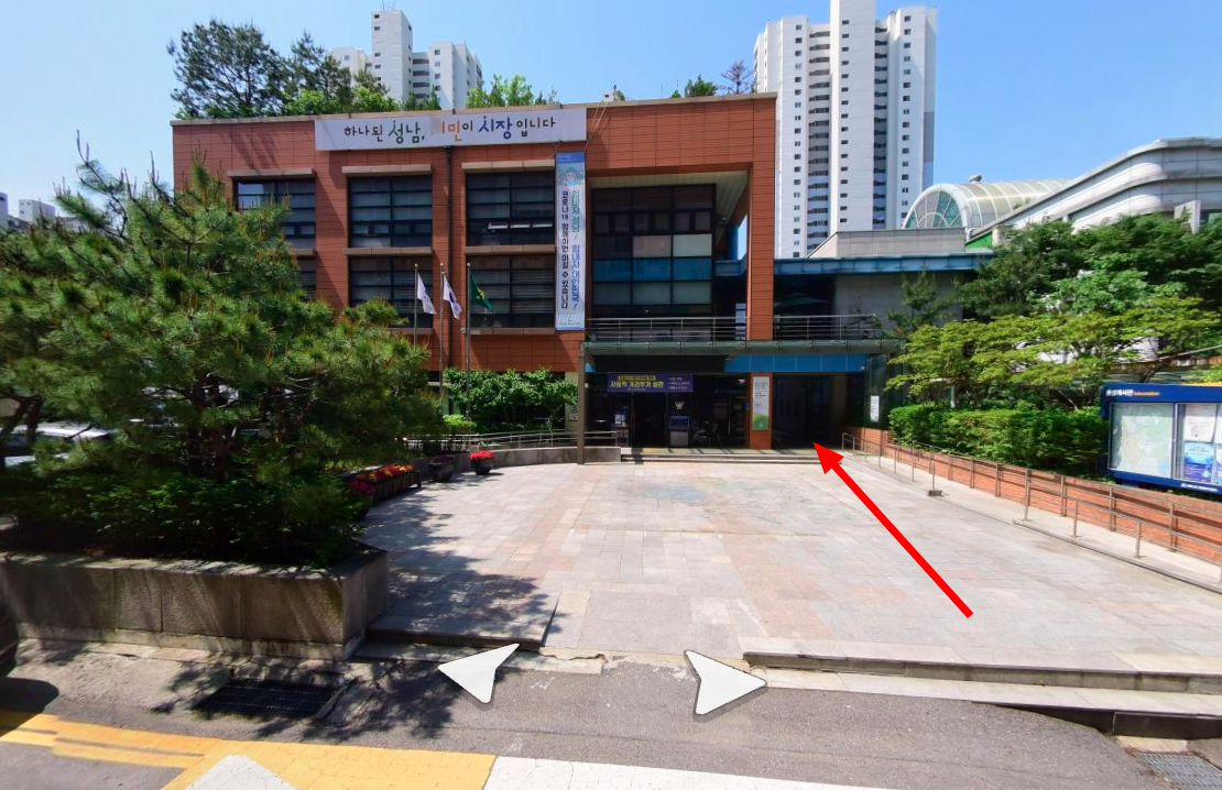 아래 행정복지센터 입구에서 화살표로 표시한 오른쪽 어두운 곳으로 들어가면 된다