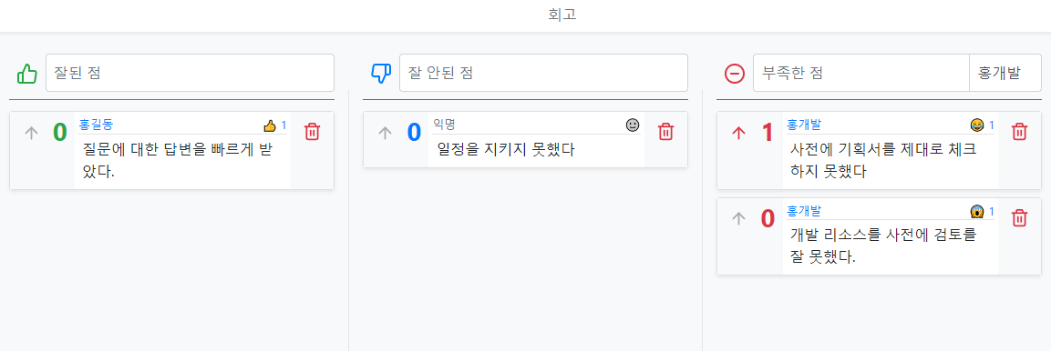 간단히 회고를 생성하고, 링크를 협업자들에게 공유하고 작성하고 논의하면 된다.