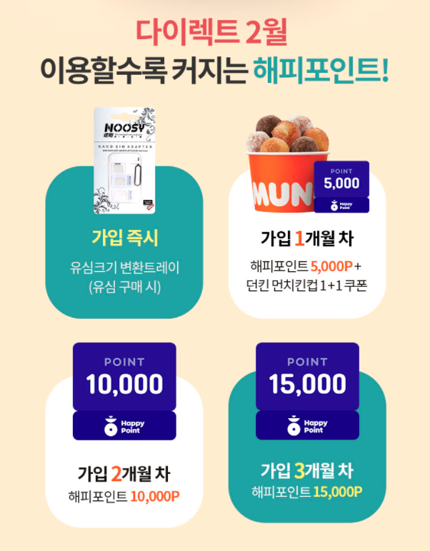 * 1개월차 해피포인트 5000P, 먼치킨컵 1+1 쿠폰
