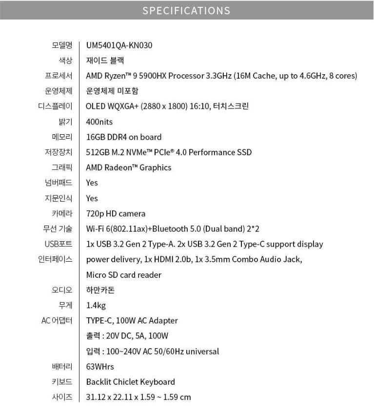 에이수스 젠북 14X UM5401QA 모델로 쿠팡에서 구매!