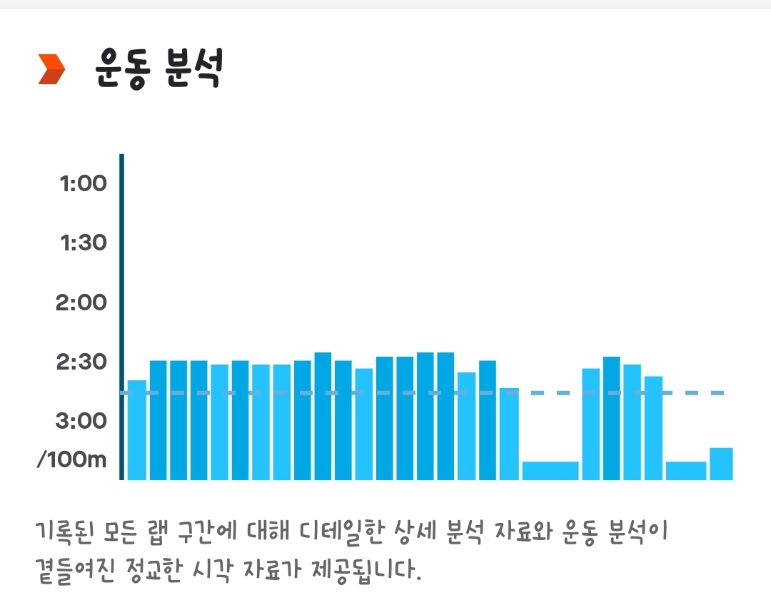 운동 분석 데이터는 중간에 내가 얼마나 쉬었는지를 같이 볼 수 있다.