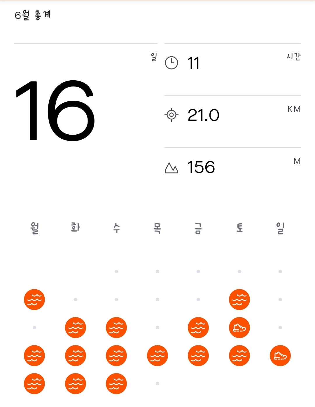 추가로 통계를 보면, 한달간 운동한 날짜를 볼 수 있는데.. 이건 삼성헬스에도 볼 수 있지만 스트라바 UI가 훨씬 낫다.