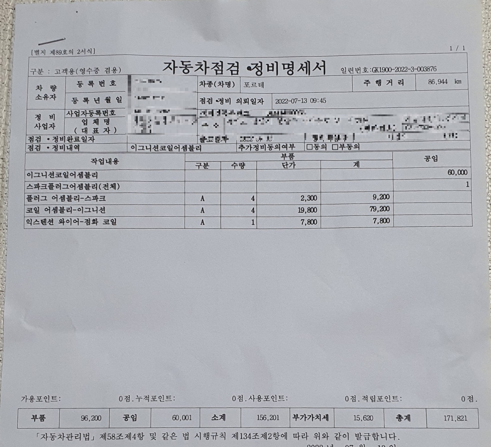 차 자체가 10년이 넘은아이라.. 점화플러그+코일 셋트로 교환하는게 좋다고 해서 그냥 그렇게 해달라고 했다.