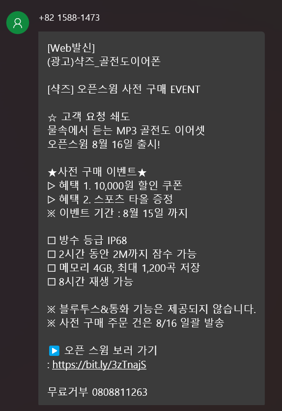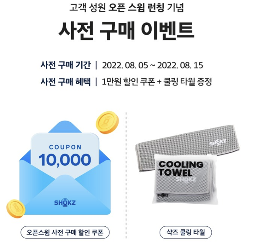 원래 자유수영할 때 쓰던 이어폰이 고장나서 검색해보다가 샥즈 오픈스윔 제품 구매하려고 기다리고 있었는데, 어제 갑자기 급문자 받음... 아... 겁내 긴 시간이었다..
