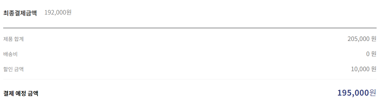 사전구매 할인쿠폰 만원 + 적립금 3000원 사용해서 실제로는 192,000원에 구매했다.