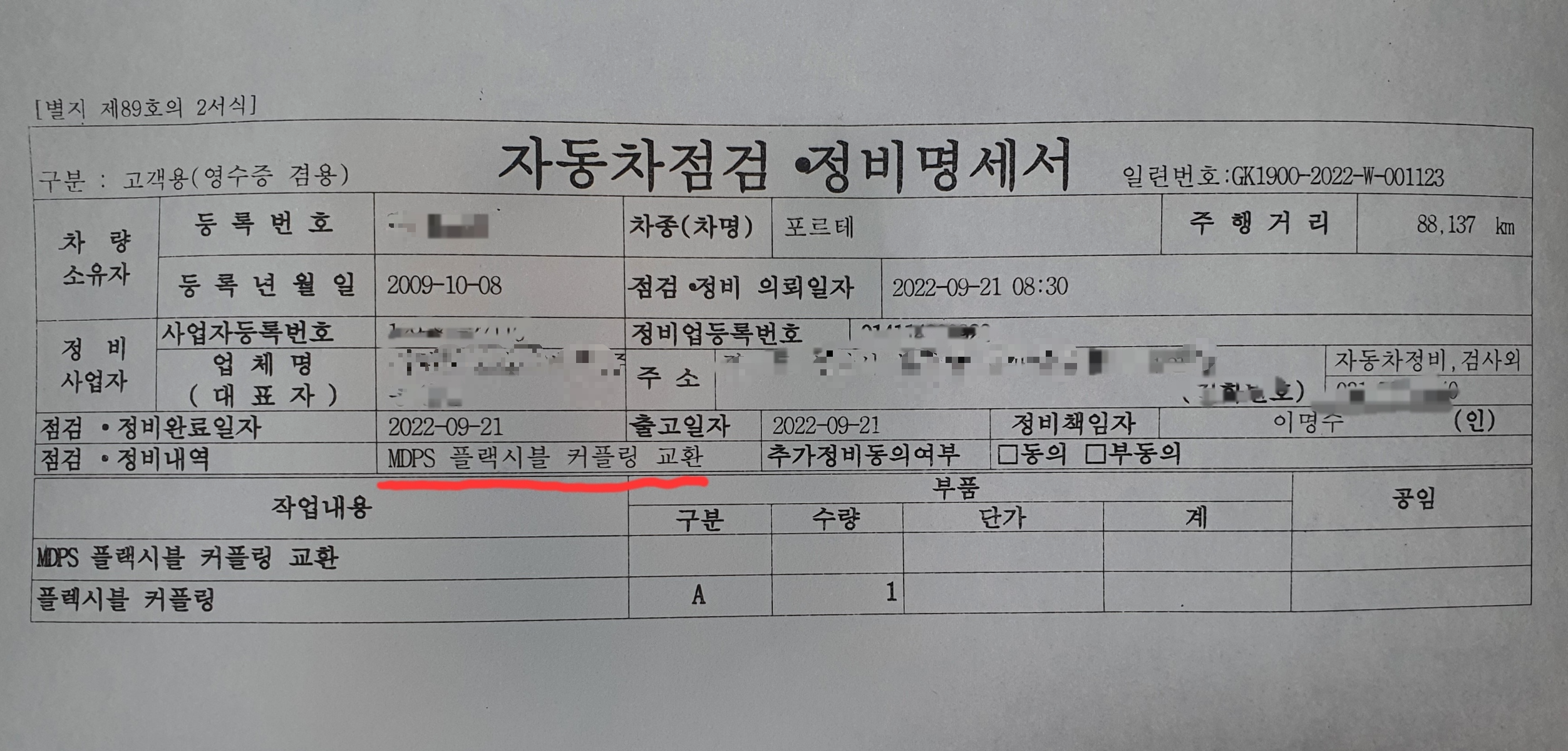 핸들 커플링 AS가 가능한 목록에 내 차가 있다고 확인받은 뒤, 동네 기아자동차 정비소로 가서 정비신청을 했다.