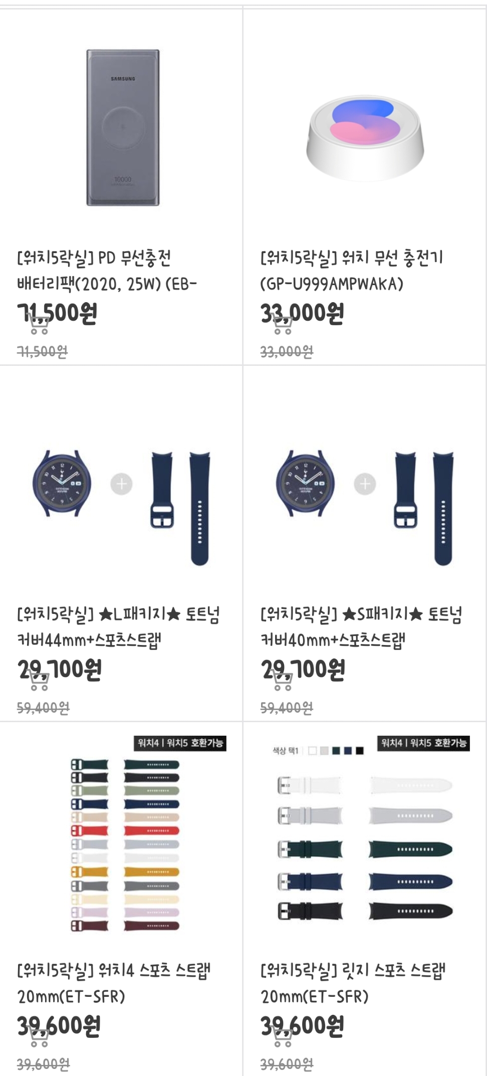오픈 초기엔 워치4 스트랩 위주로 있었는데, 8/21(일) 다시 확인해보니 워치5 용 스트랩 상품들이 더 추가되었다.