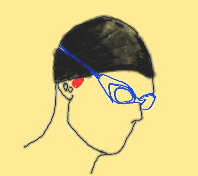 처음에는 샥즈 공홈에 있는 사진처럼 연결끈 부분이 목부분으로 가도록 해서 수모로 살짝 눌러준 채로 착용했었는데 모자로 골전도 부분을 누르다 보니 수영 중에서도 그렇고 수영하고 나서 눌렸던 부분이 늠 아픈거다.. -_-;;