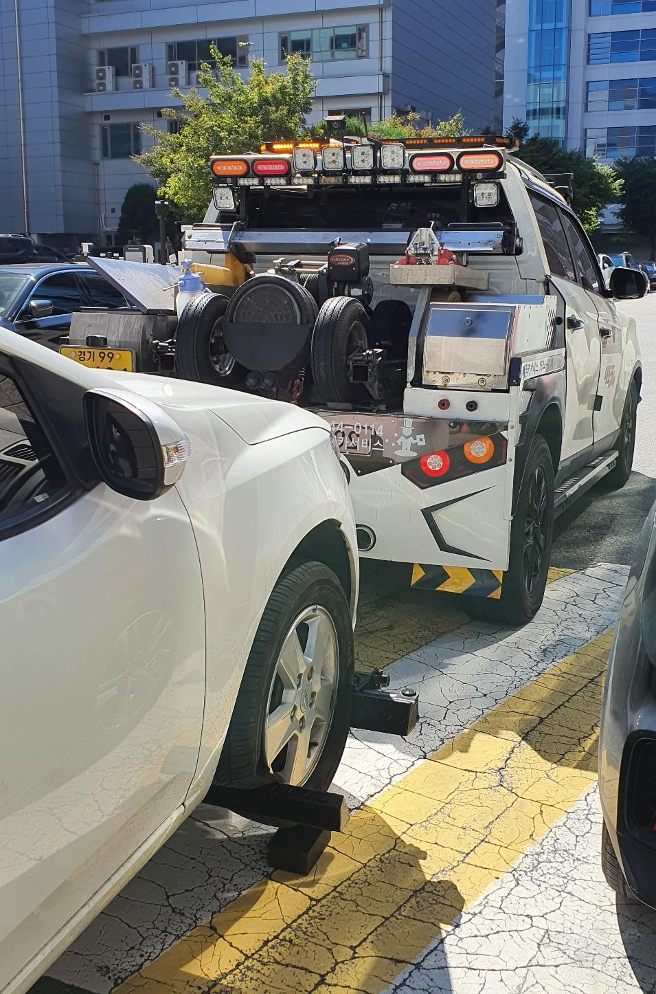 이전에 엄마차 펑크가 났을 땐, 차로 금방 갈수있는 거리에 타이어뱅크 매장이 있어서, 아저씨가 임시로 바람을 만땅 넣어주고 운전해서 바로 가라고 해서 그렇게 직접 이동했었는데 3km정도는 그렇게 갈수있는 거리가 아닌지라.. 견인을 하게됨.