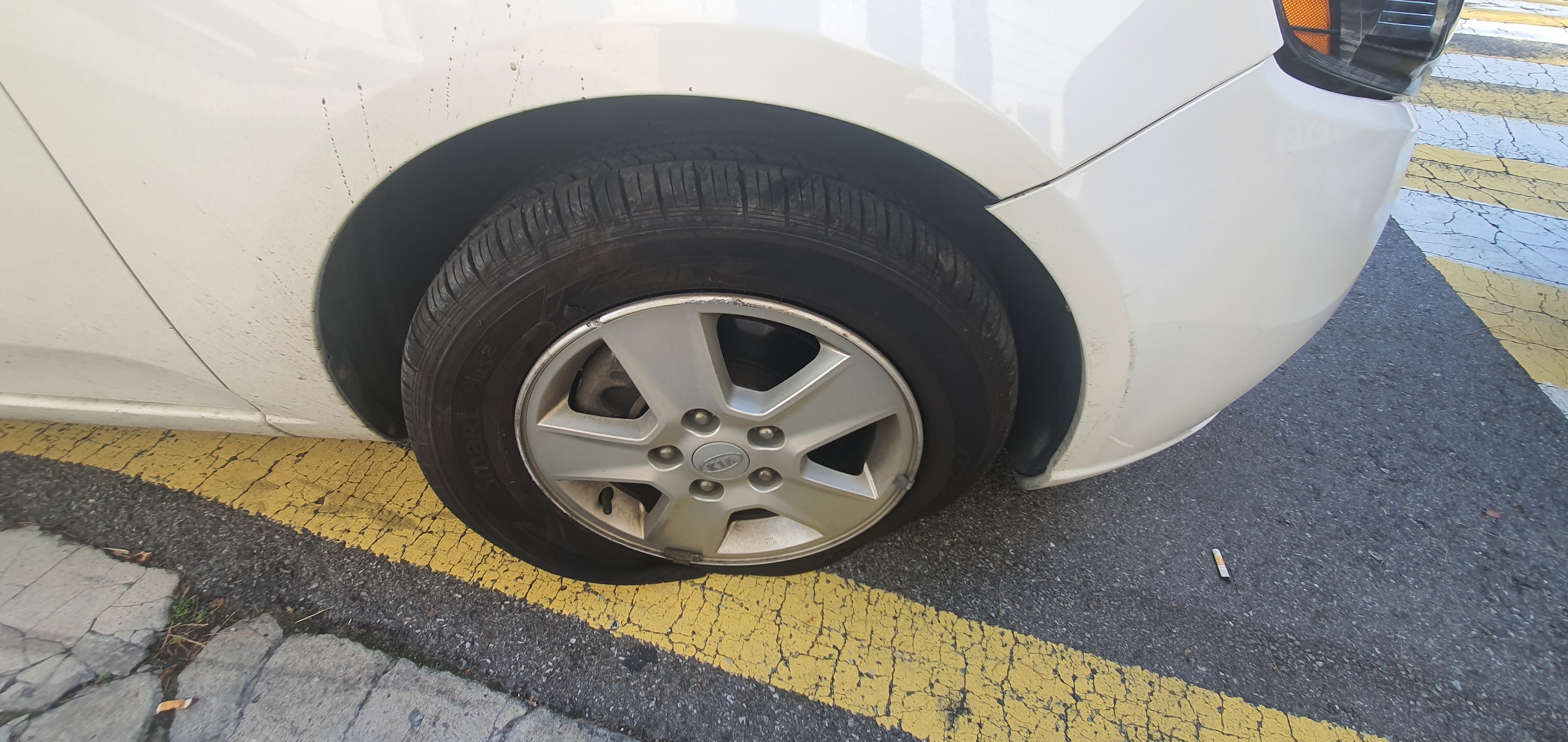 오늘 주차하다 타이어 펑크가 났다. 보도블럭 옆쪽에 세우다가 보도블럭 모서리쪽에 닿은거 같은데...