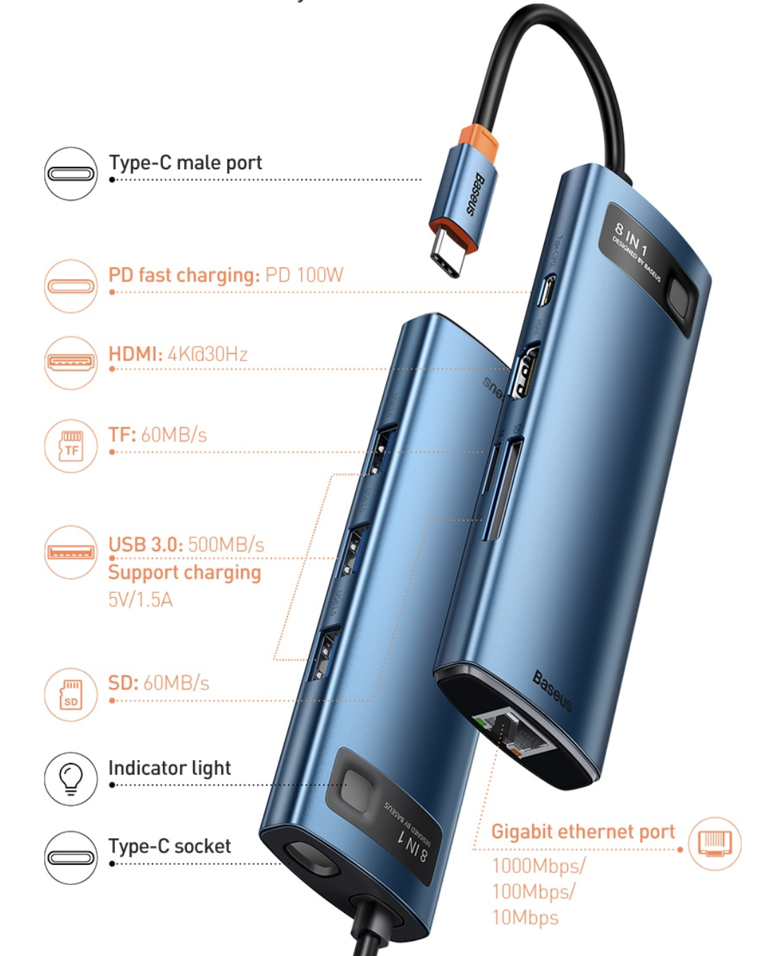판매처에 쓰여진 제품명은 Baseus-도킹 스테이션 USB-타입 C 어댑터 HDMI-호환 USB 3.0 허브, SD TF 리더 PD 100W USB C 허브 맥북 프로 에어 허브 이다.. 길어.. ㅋ