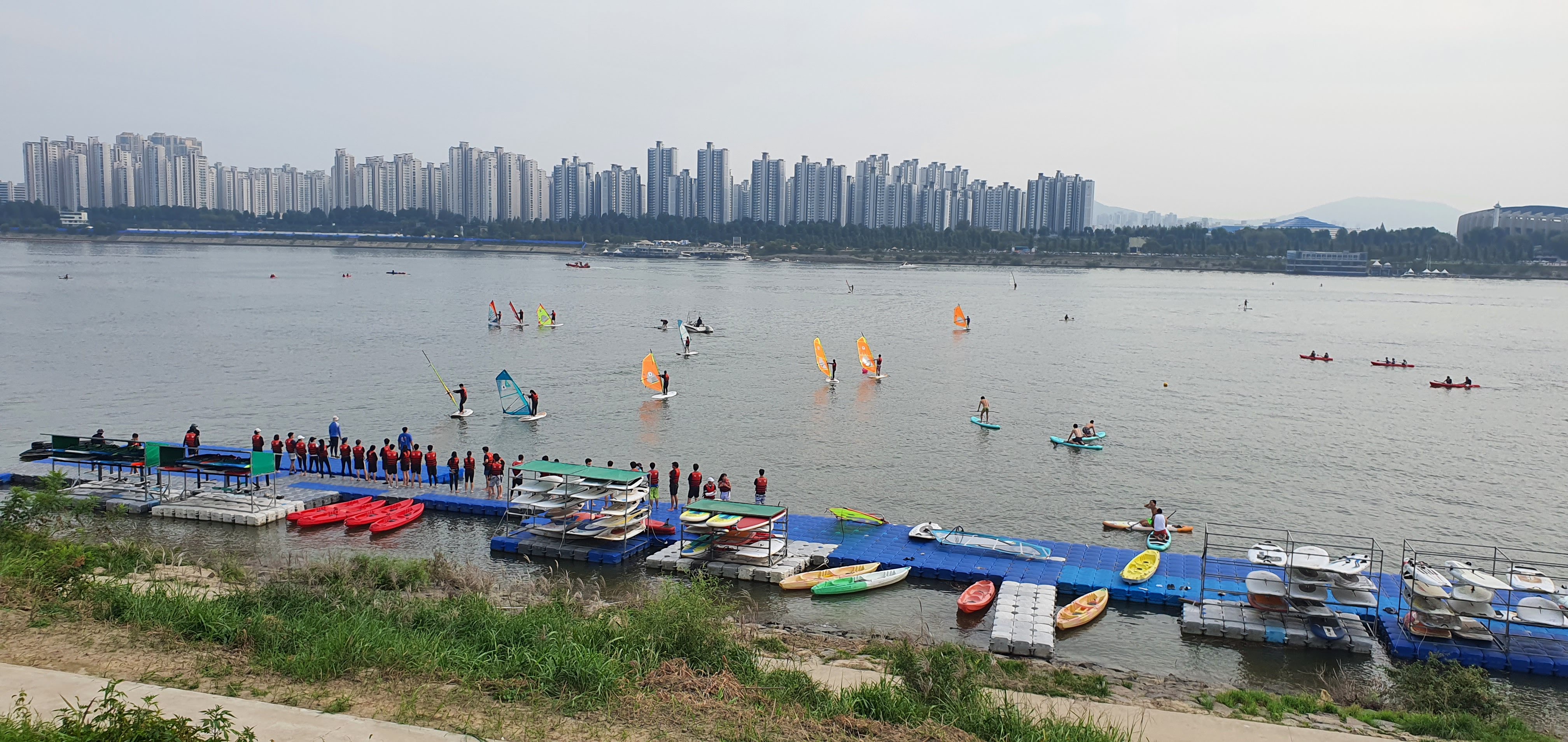 그렇게 한강 자도를 타고 가다보니, 뚝섬윈드서핑장에 사람들이 강습받는걸 볼 수 있었다.