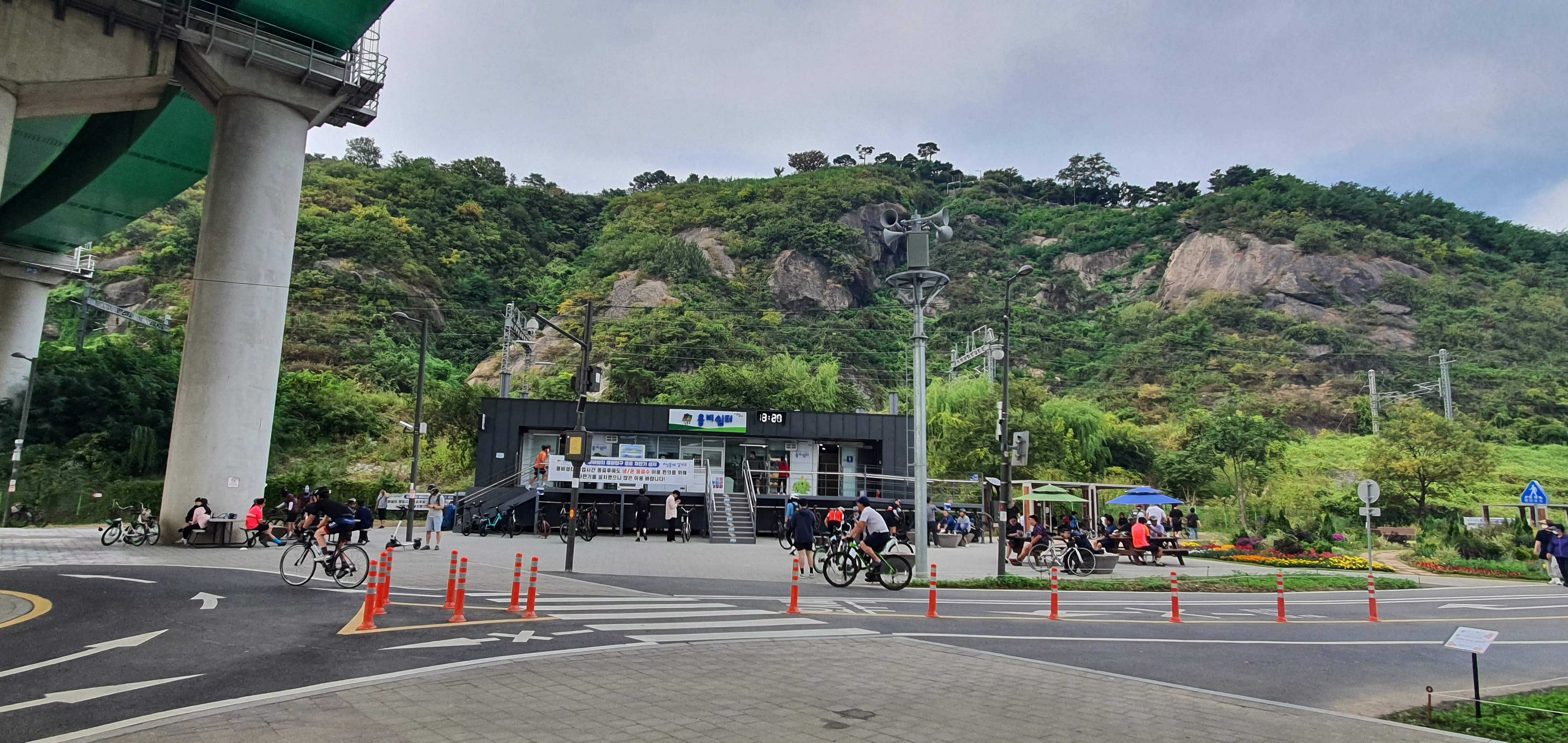 우측에 계단옆에 자전거바퀴가 갈수 있는 길이 만들어져 있어서..