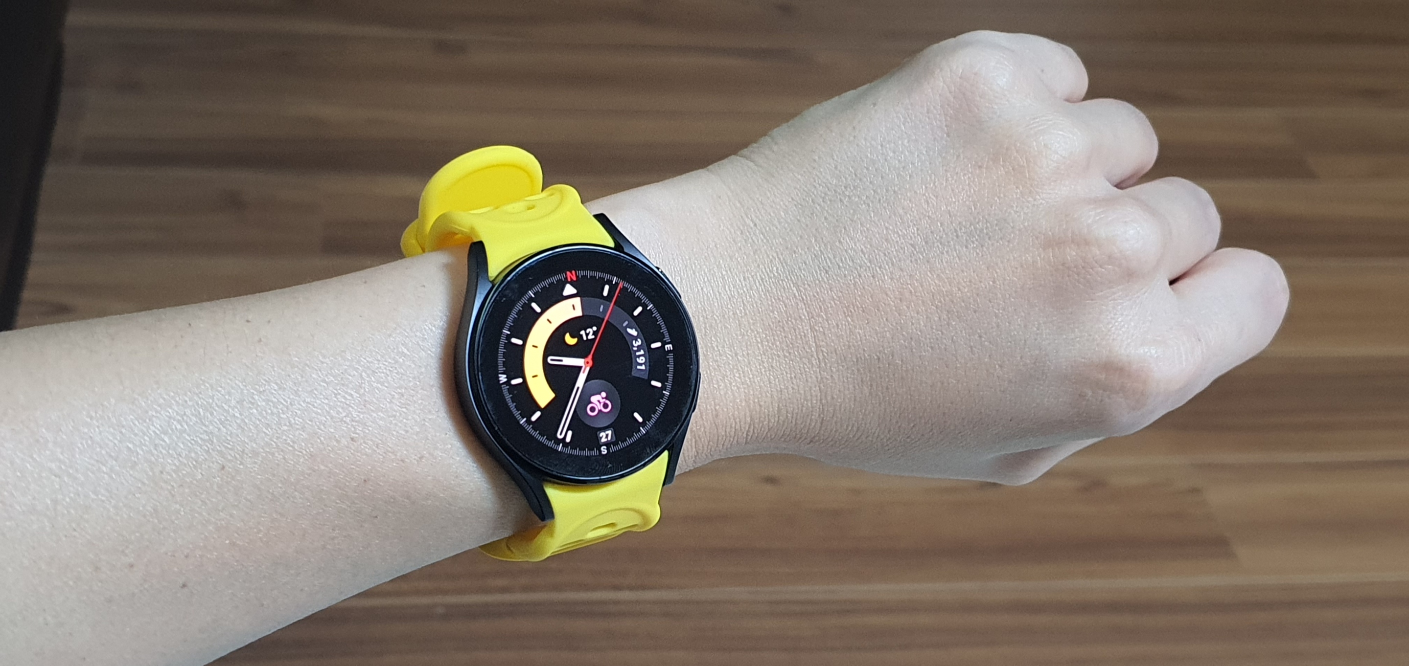 원래는 워치5의 다른색 기본스트랩을 사려고 했지만, 노란색이 검은색 시계랑 잘어울리는것 같기도 하고..