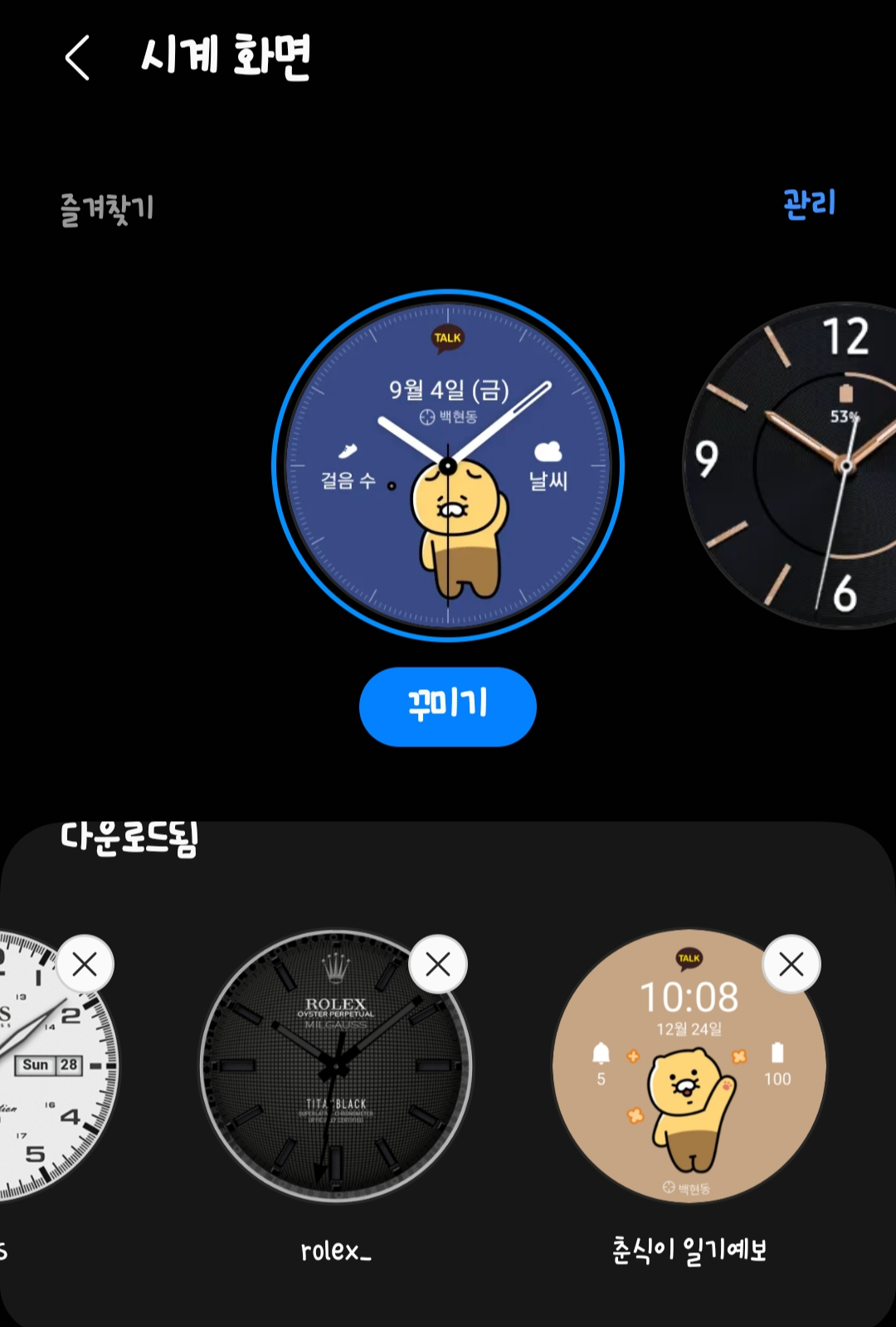 바로 설정해서 써보고 있따. ㅋ 춘식이 워치페이스 귀엽다..~