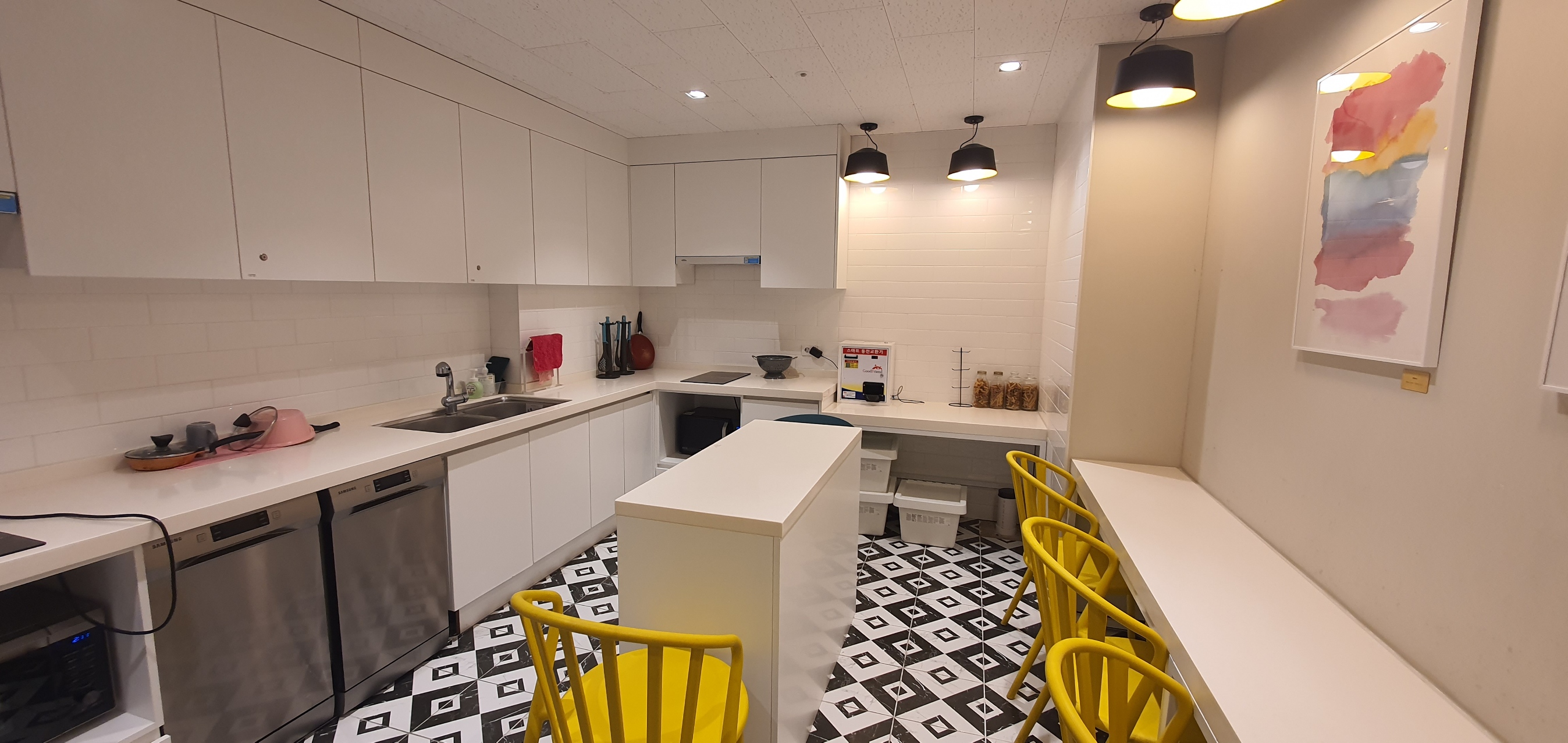 2층에 위치한 공용공간. 전자렌지랑 이런저런 요리도구를 사용할 수 있다.
