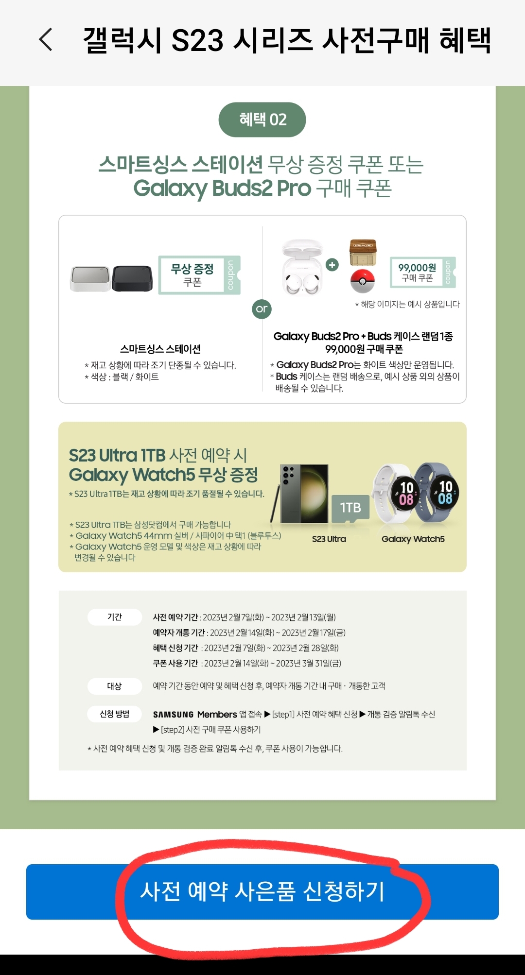 | 갤럭시S23 시리즈 액세서리 기획전 (구매 및 개통고객, 사전구매 고개 포함) 구매기간 23년 6월 30일까지 (0) | 2023.02.17 |