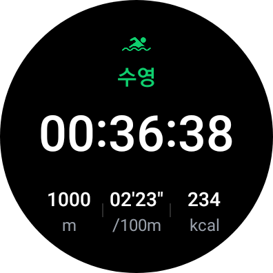 위 데이터는 수영이 끝난 뒤에, 휴대폰에 삼성헬스랑 연동이 된 이후에 폰에서도 확인이 가능하다.