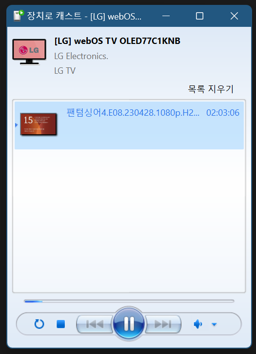 크롬 브라우저에서 크롬캐스트 기능을 사용해서 역시 화면전송 기능으로도 재생을 해봤지만.. 이게 제일 깔끔함.