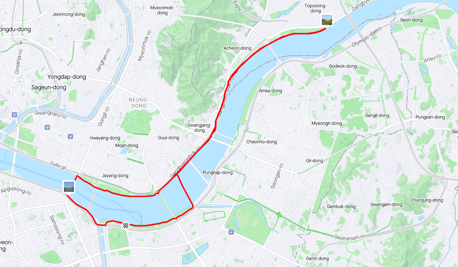 구리한강공원을 찍고 돌아오는 코스이다.
