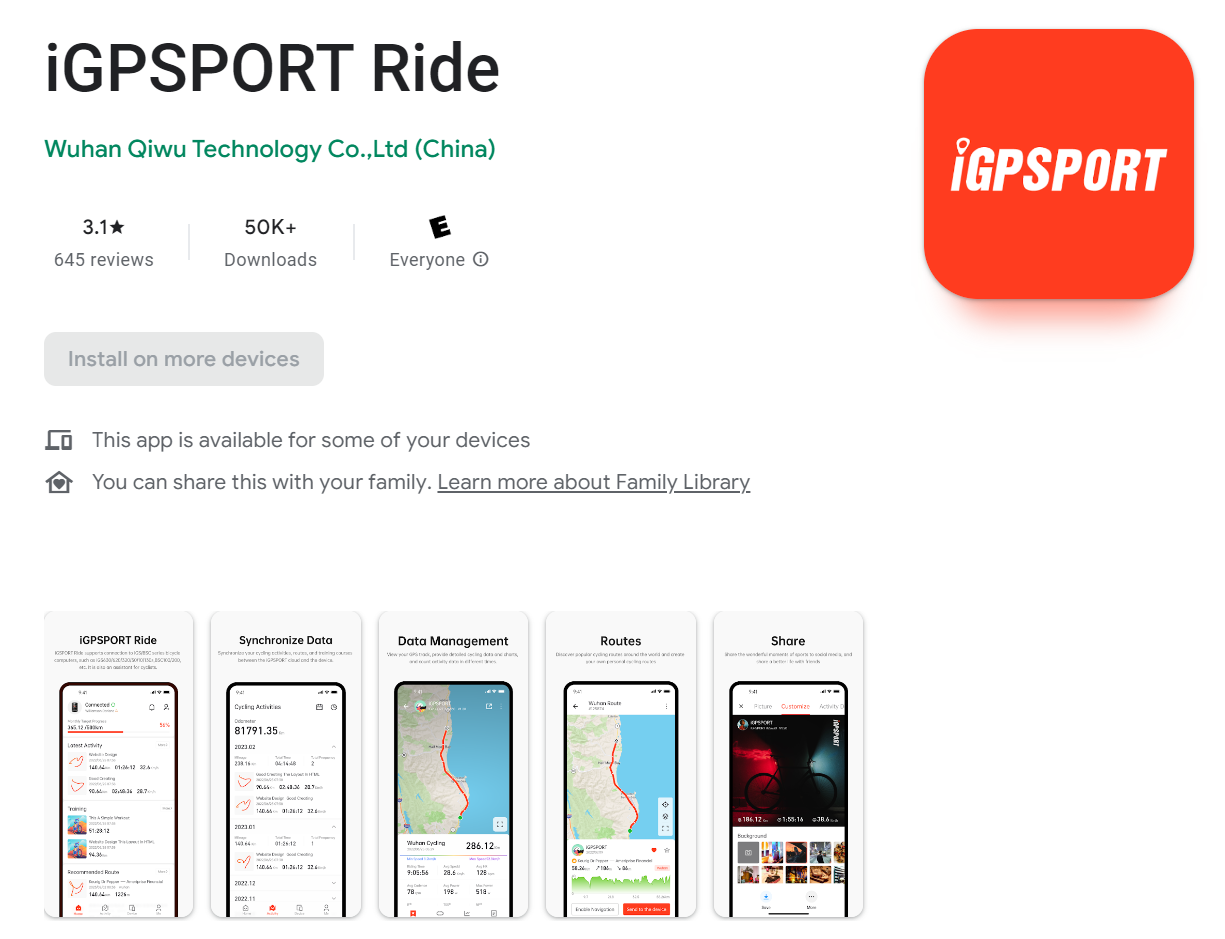 스토어에서 검색을 해보니, 아예 다른 이름의 iGPSPORT Ride 앱만 검색이 되서 설치를 해봄..