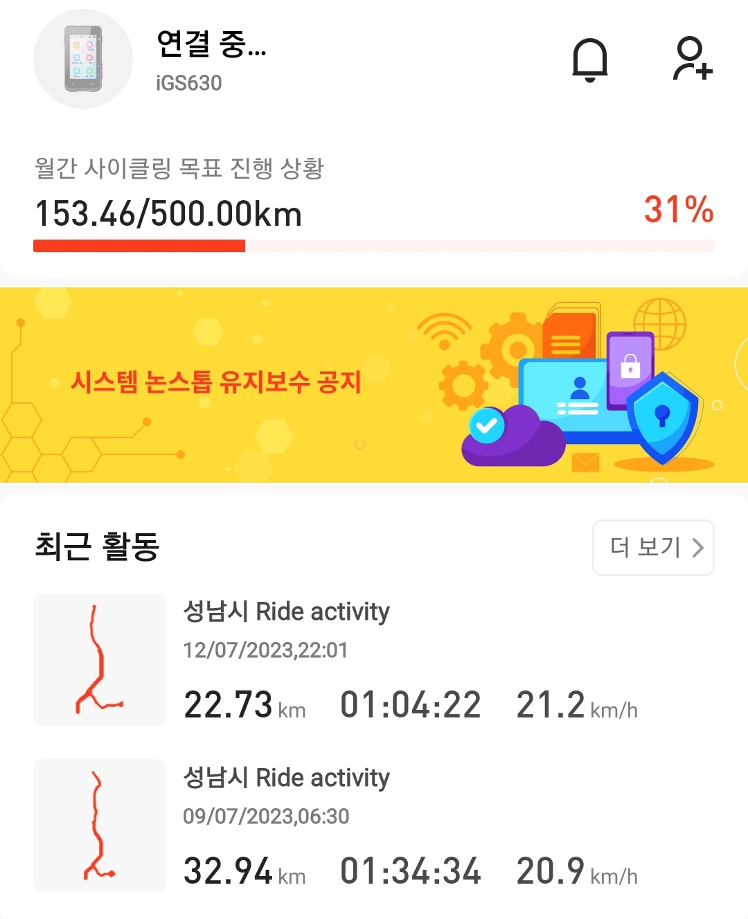 7/12 밤에 라이딩을 하고 돌아왔는데, 갑자기 활동 동기화가 안되는 것임..