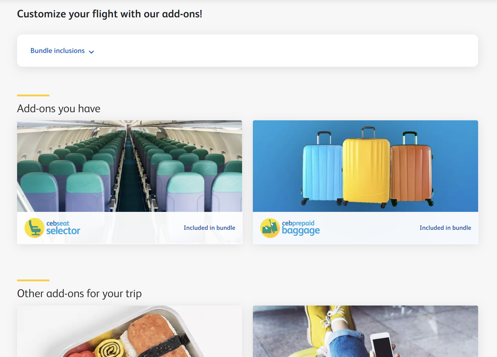 세부퍼시픽 예약 중 에드온 상품이 로딩상태로 나오는 화면