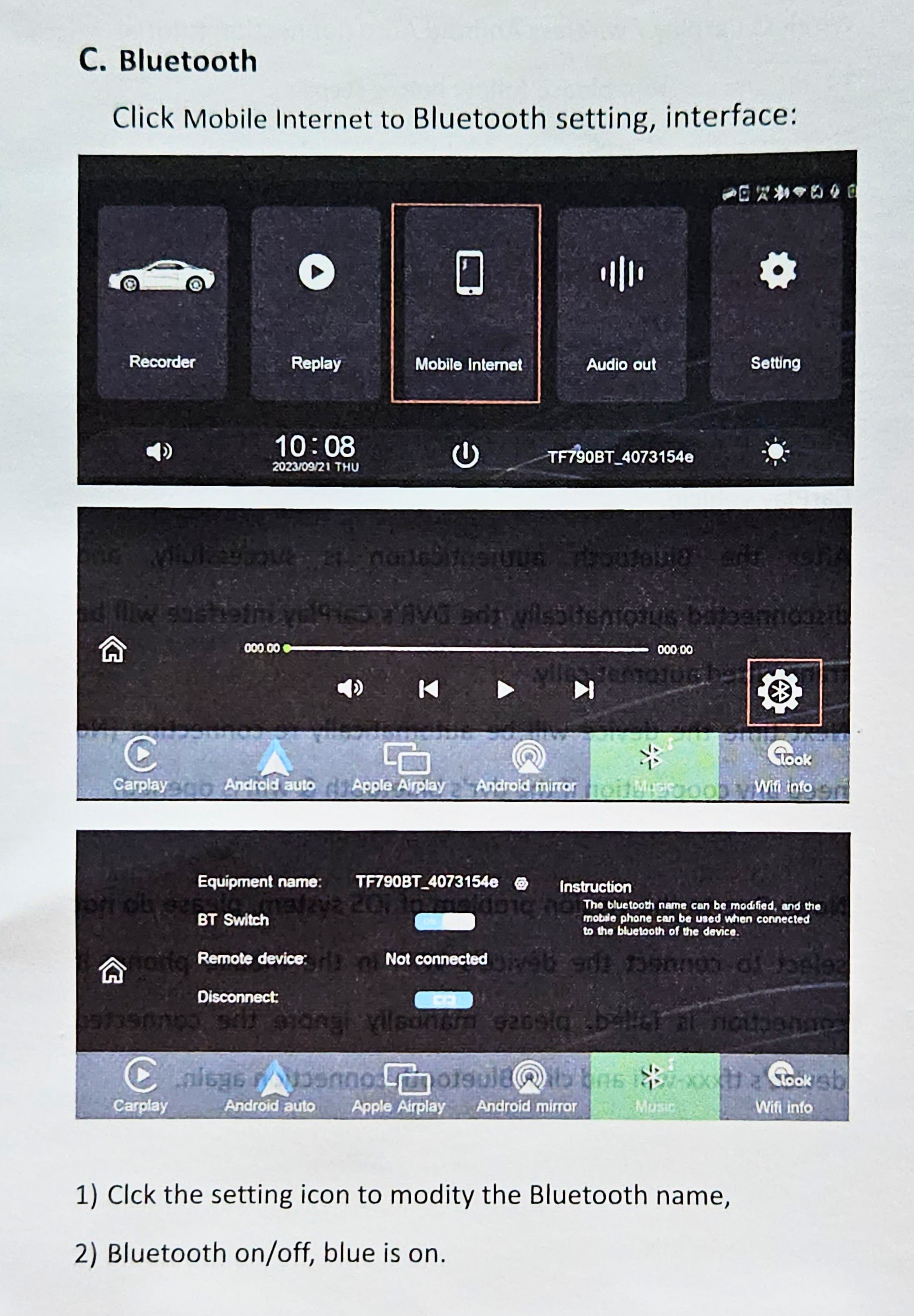 그리고 대시캠의 블루투스 페어링 모드로 만들려면 기존에 Bluetooth 가 ON으로 되어있는데,