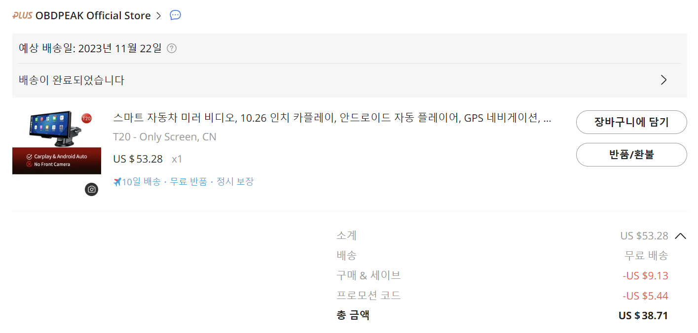 알리익스프레스에서 카플레이 모니터 혹은 대시캠으로 가장 많은 사용을 하고 있는 제품들이 OBDPEA...