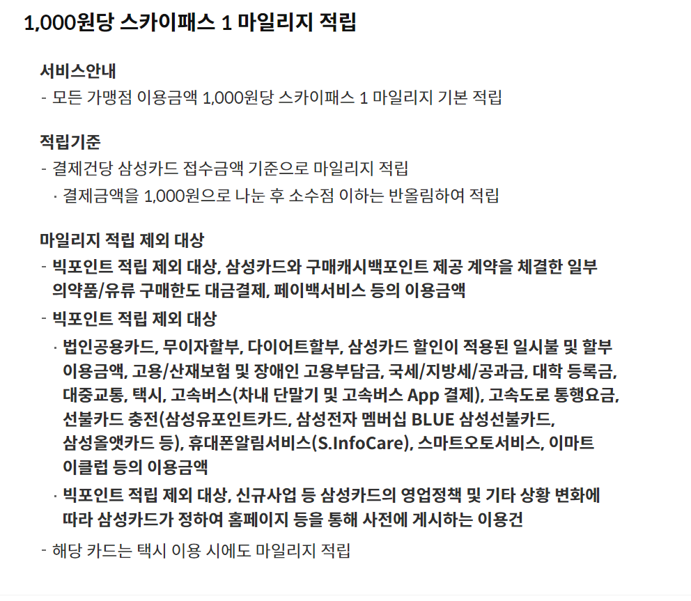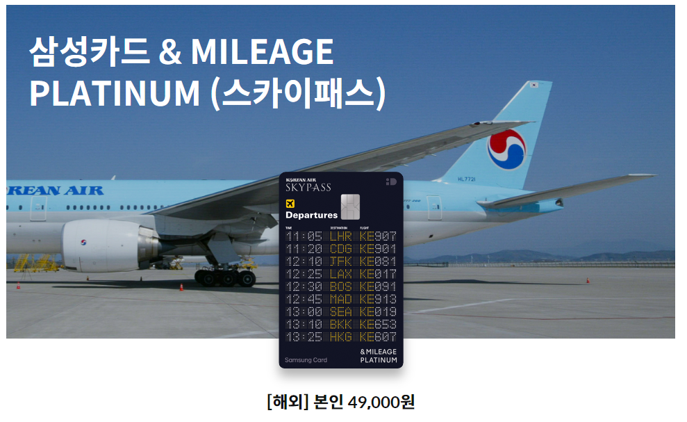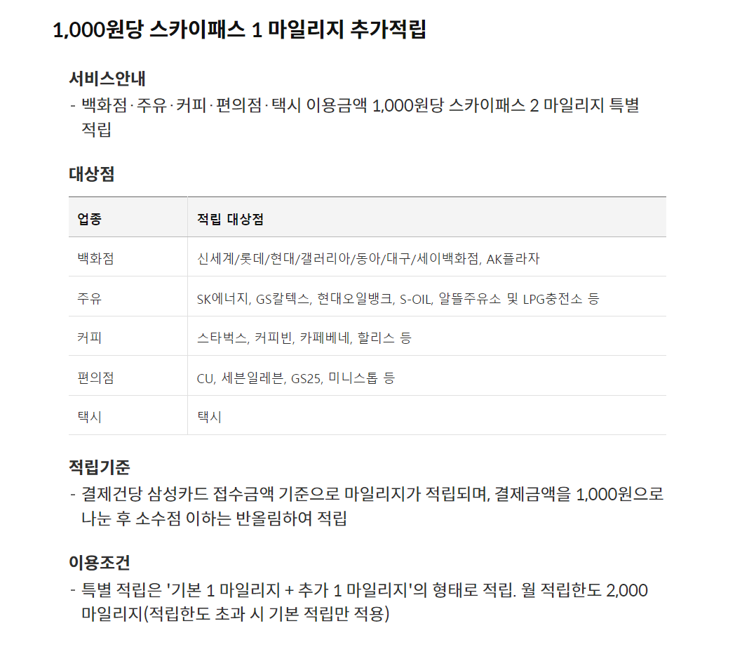 1000원당 스카이패스 마일리지를 적립해주는 삼성 & Mileage Platinum 스카이패스 카드 혜택