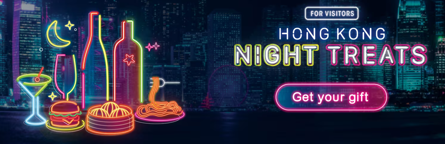 홍콩 관광청에서 저녁 6시 이후에 바/레스토랑에서 사용 가능한 100 홍콩달러 바우처를 주고 있다.