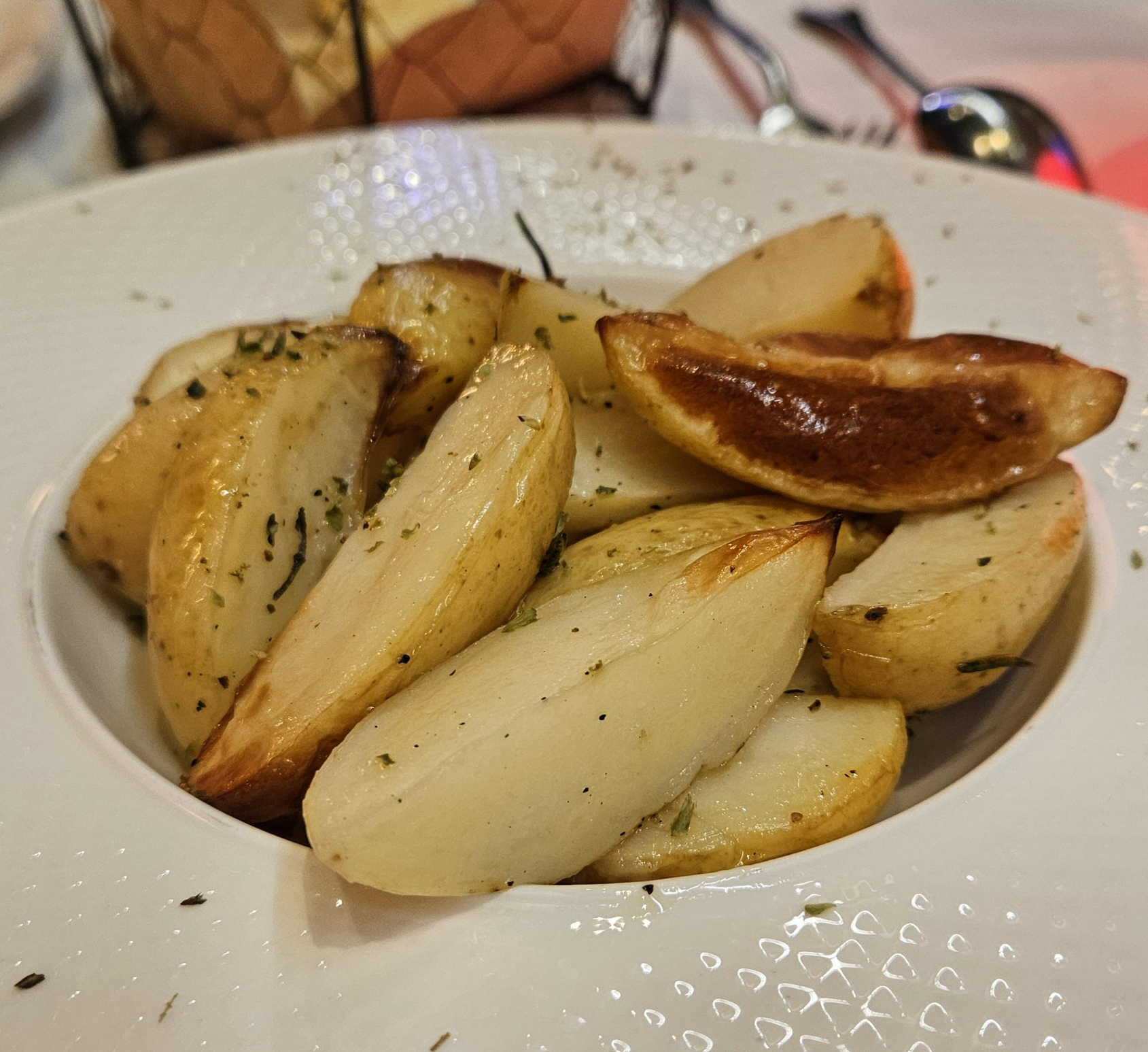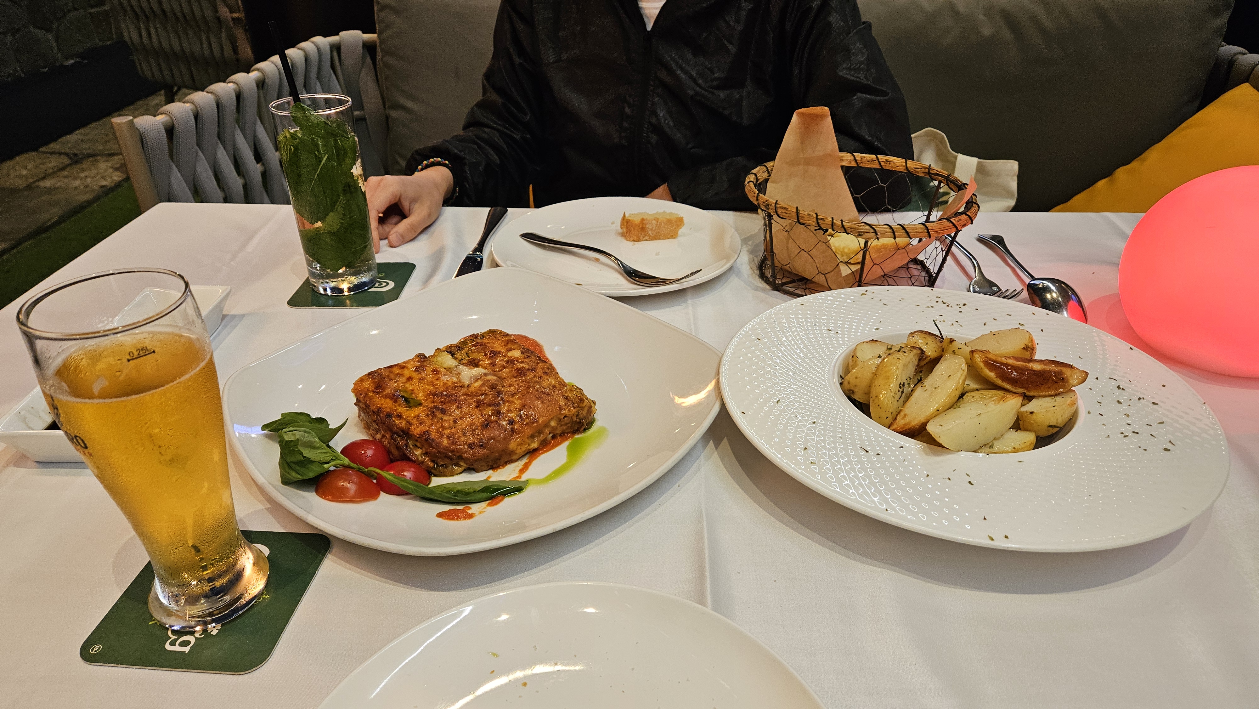 나는 메뉴에서 추천마크가 찍힌 파스타 메뉴와, 여기에 65달러를 추가하면 사이드 디쉬를 먹을 수 있는데 로스티드 포테이토를 함께 주문했다. 그리고 음료로는 맥주와 모히또를 주문해서 먹었다.