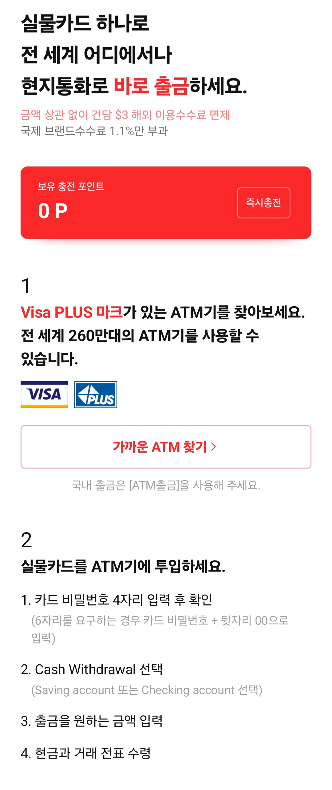 갖고있던 카드에서도 수수료없이 출금이 가능해서, 혹시나 해서 카드를 가져갔던 건데..