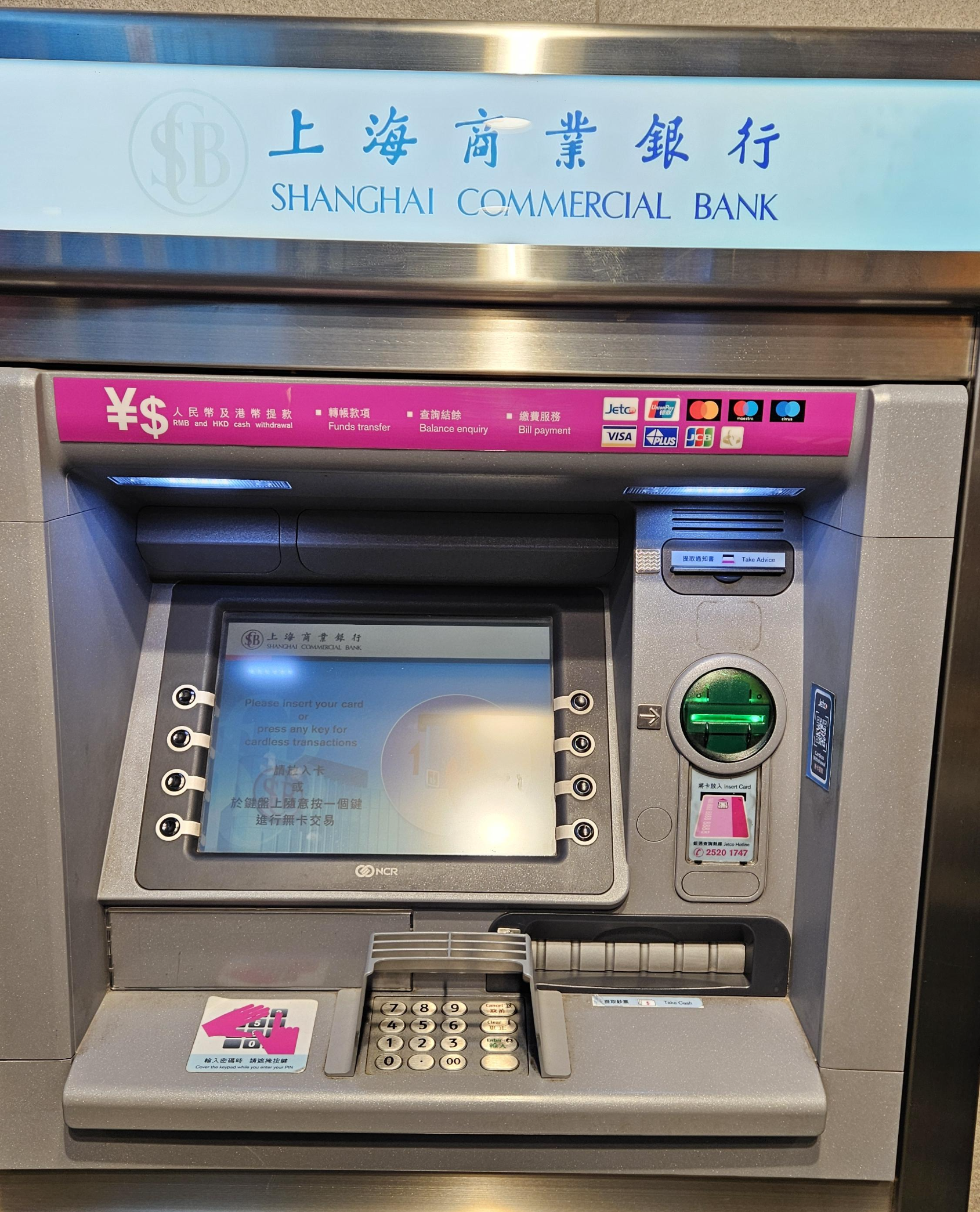 두번째로 찾아간 ATM은 Jetco ATM 이라고 해서 찾아갔는데, 상하이 커머셜 뱅크 (SCB - Shanghi Commercial Bank) ATM 기기가 있었다. English 선택을 하고, 위에 써진대로 Cash Withdrawl 선택 후, Saving Account 선택하고 나서 출금할 수 있었다.