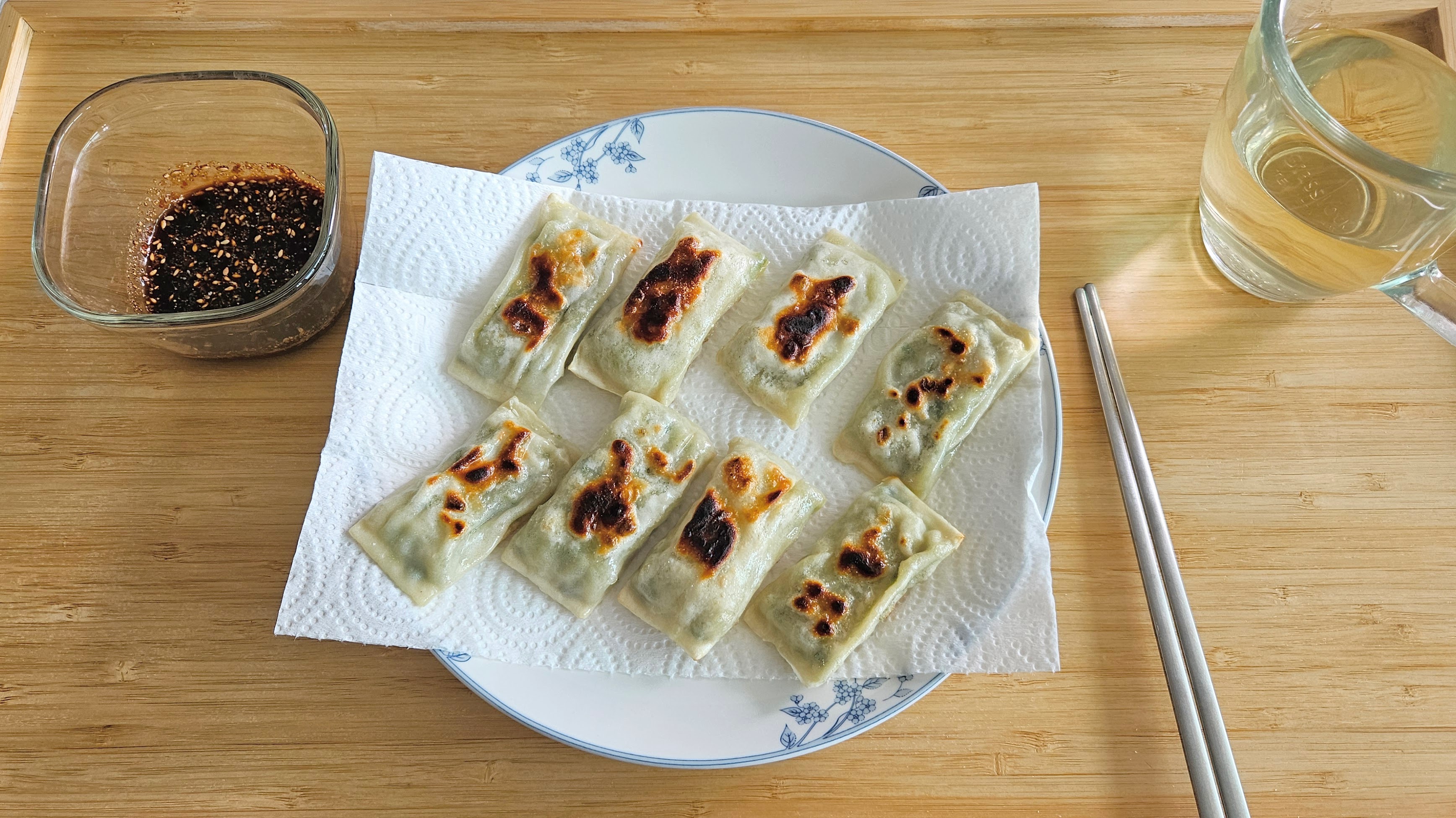 군만두니깐.. 후라이팬에 구워봤다. 얊고 넓적해서 역시 후라이팬에 굽기가 좋다.