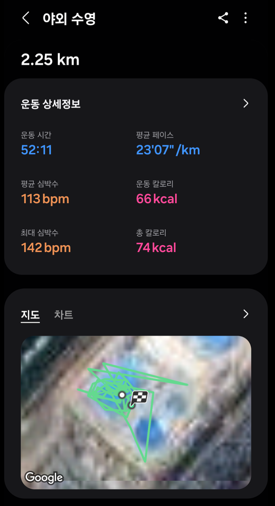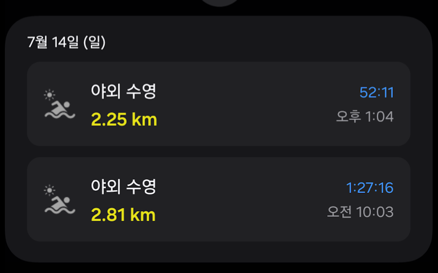 근데 수영 거리가 어마어마하게 나옴...; 내가 저렇게 길게 수영했을 리는 없는데...;