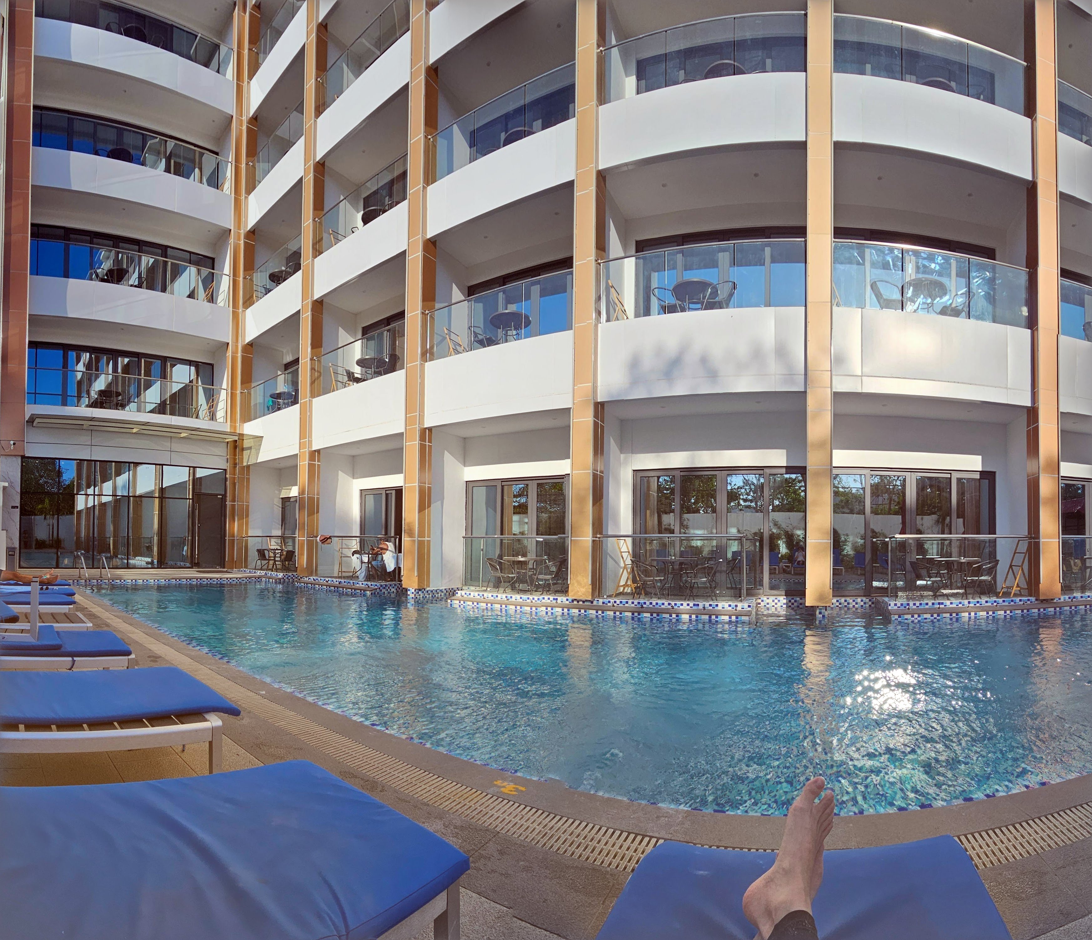 아래는 조식 먹는 곳에서 찍은 건데, 실내에서 먹을 수도 있고 실외 루프탑에서 먹을 수도 있었다.