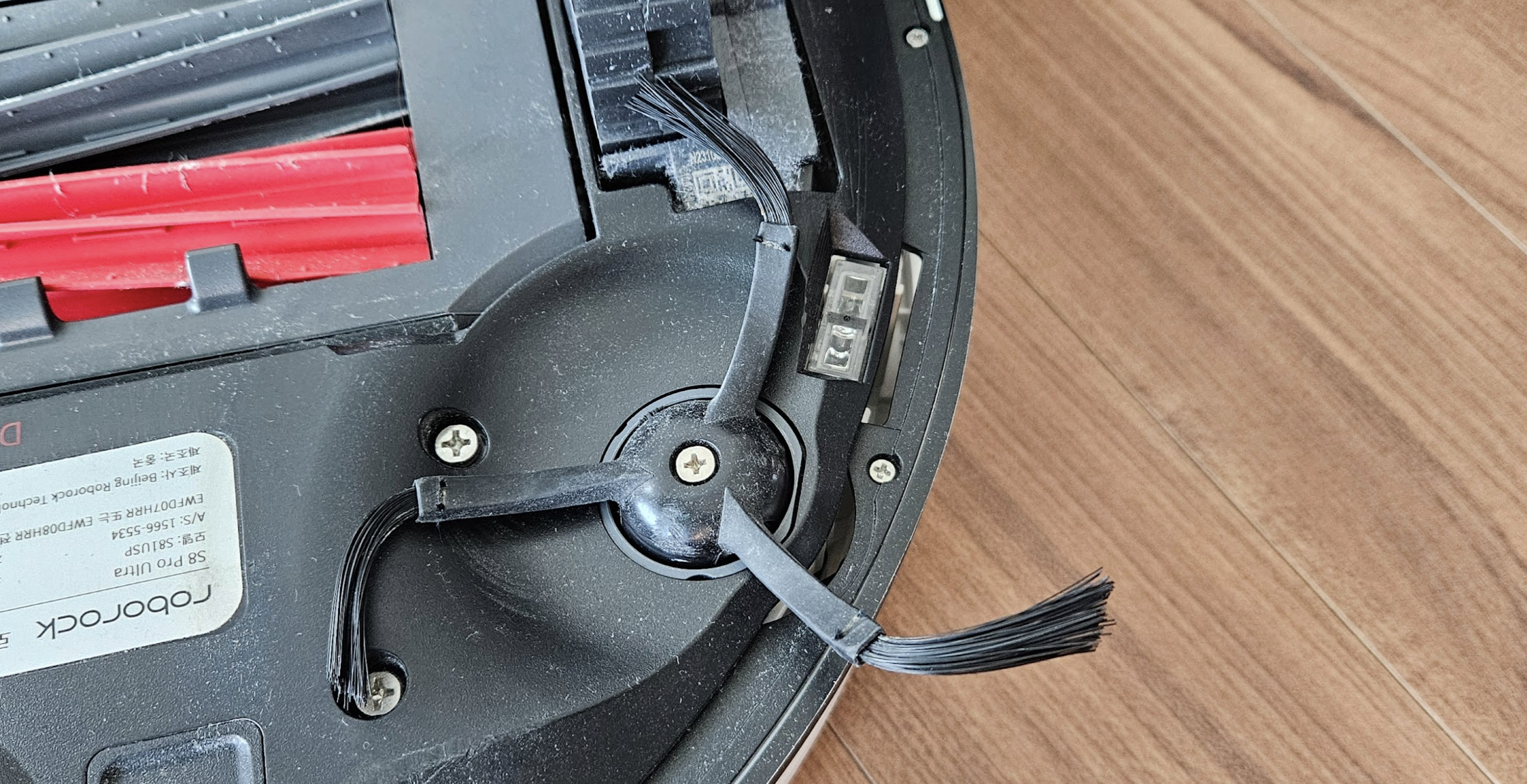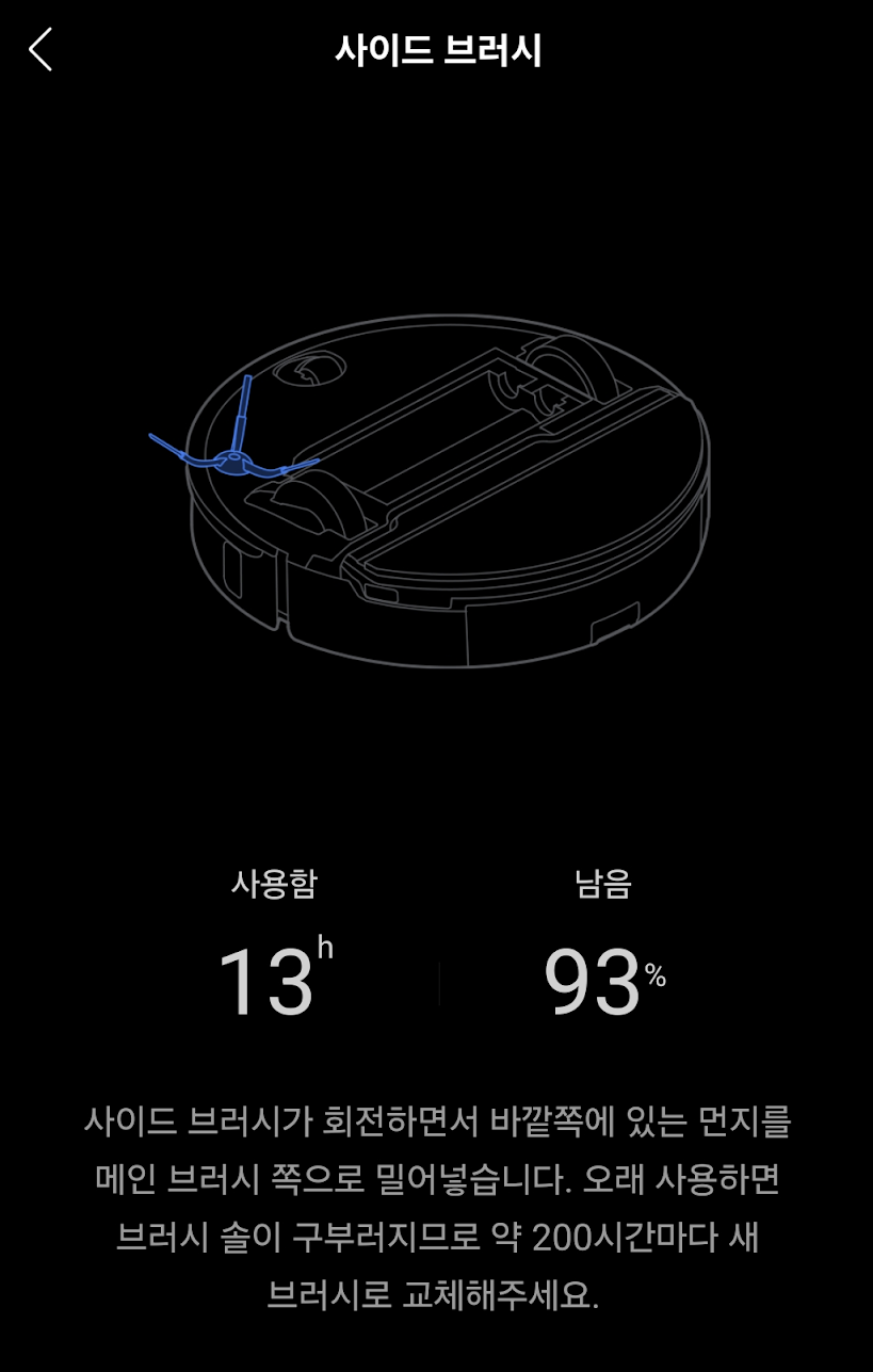 로보락 쓰다보면 사이드브러시를 교체하라는 알람이 뜨는데... 한번 무시하고 초기화했었는데 또 떠서 확인해보니, 아래 사진과 같이 브러쉬 솔이 휘어있는 것을 확인할 수 있다. (내가 넘 무시했나..;;)