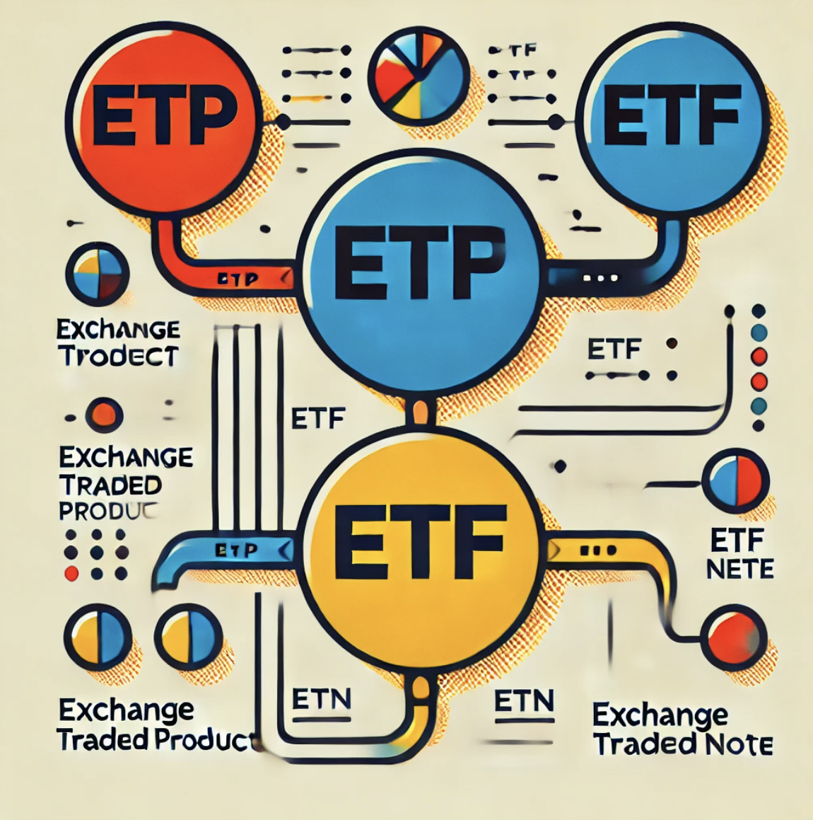 쉽게 말하면 **ETF(상장지수펀드)와 ETN(상장지수증권)**을 포함하는 큰 개념이다.