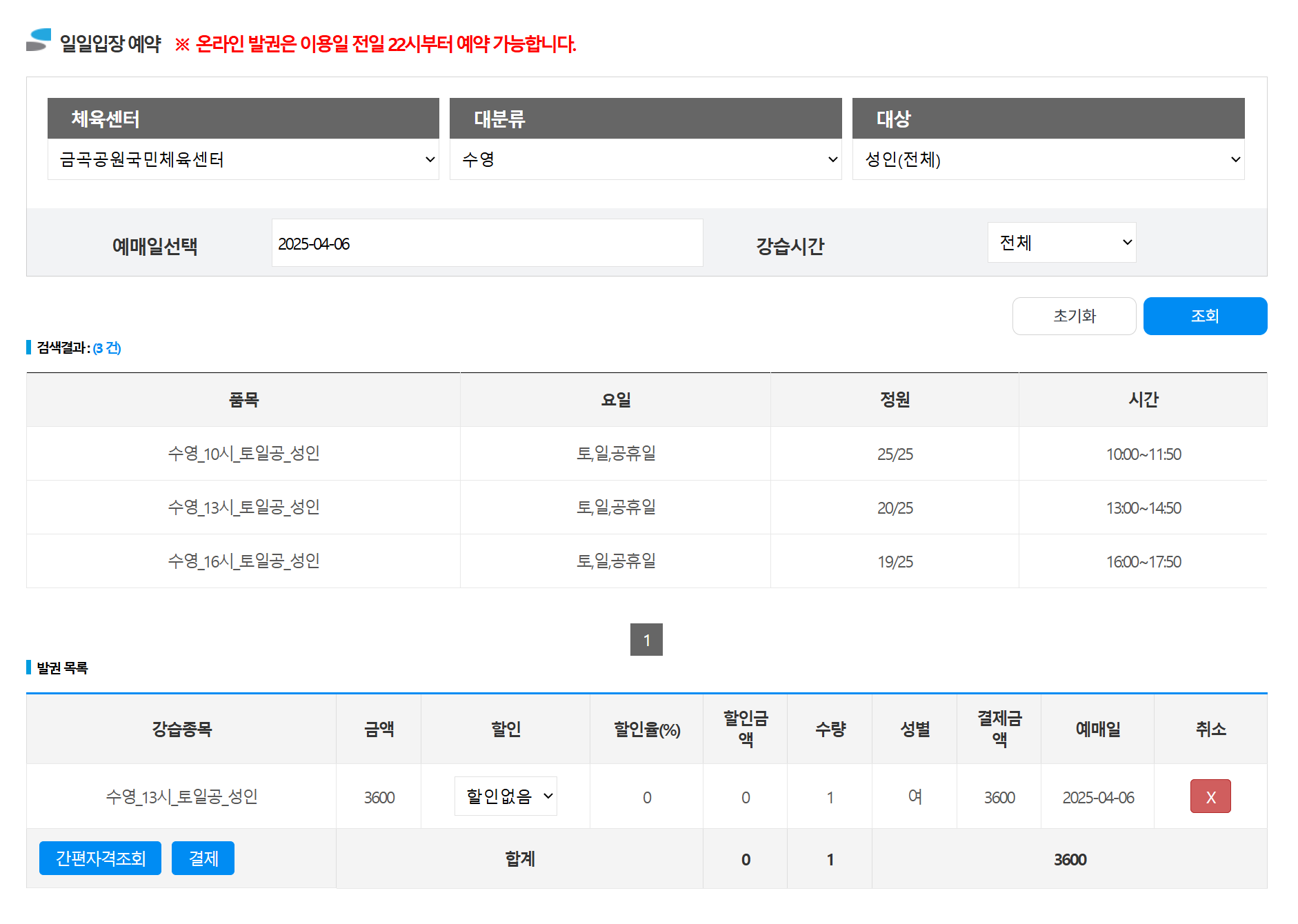 전일 22일부터 예약이 가능한데, 내가 들어간 시간이 10시반쯤이었나... 이미 인기좋은 오전시간대는 예약이 마감.