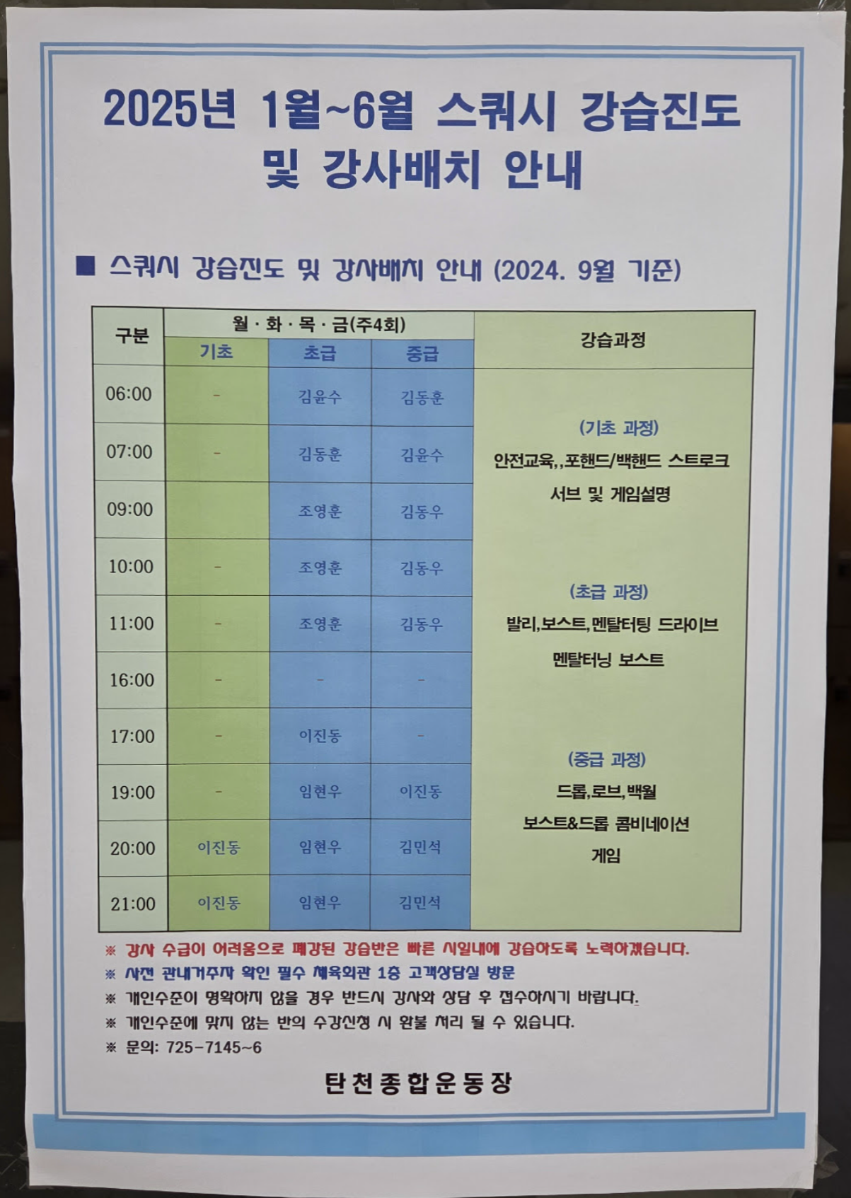 스쿼시 수강신청을 하면서, 처음 배울때 어떤 수업을 신청해야 할지 잘 몰랐는데...