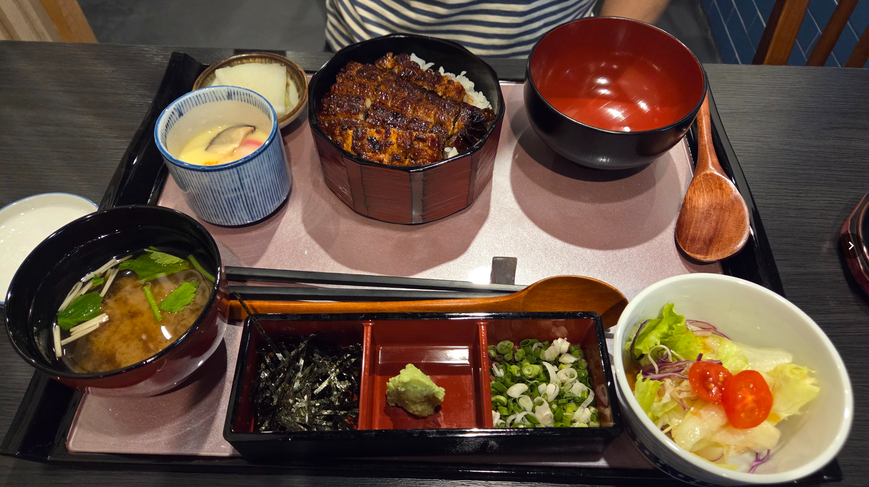 - 두 번째: 두 번째 1/4은 준비된 야쿠미(薬味, 양념)와 함께 먹습니다. 보통 다진 파, 와사비, 김 등이 제공되며, 이를 밥과 장어에 섞어 먹으면 색다른 맛을 느낄 수 있습니다.