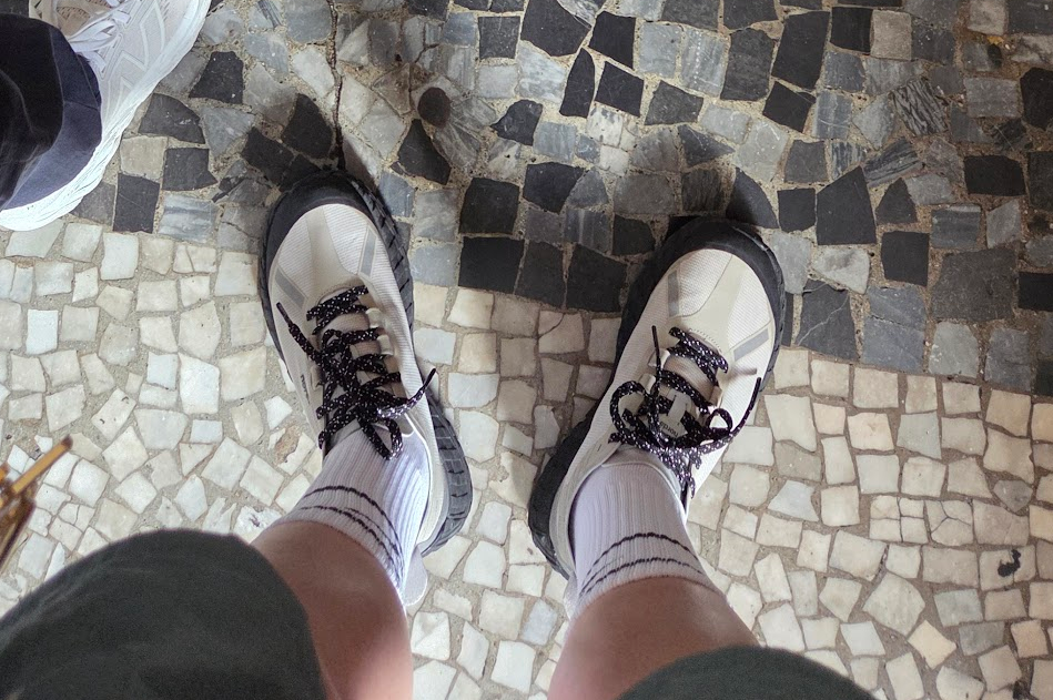 신발 전체적인 천이 굉장히 얇고.. 이번에 유럽가서 여러날 걸어다니고 느낀 건데, 발에 생각보다 땀이 잘 차지 않았던 것 같다. 이탈리아에선 34도까지 올라가는 날씨였고 바닦이 좀 두꺼운 운동용 양말을 신었음에도 발이 덥긴 했지만 땀이 엄청 차지 않아서 그날씨에도 발이 쾌적한 상태였던 것 같다.
