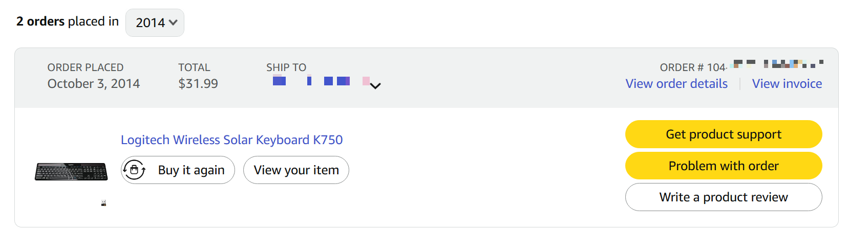 근데 진짜 아마존도 대단한 게, 과거 구매이력을 2007년도까지 검색할 수 있게 해놨다. 진짜 이런 건 좀 우리나라도 배워야한다.