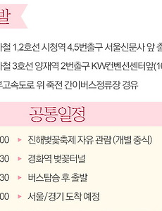 2016.4.2 진해 군항제 당일치기(버스) 버스비 : 26,000원 (왕복)기타 식비 : 16,912원 =====================합계 : 42,912원 2년전에 광양 매화마을이랑 구례 산수유 축제 당일로 다녀온 이후에,,그때 군항제도 가자고 했었는데 올해 드디어 군항제에 다녀왔다. ㅎㅎ 그땐 위메프에서 국내여행상품으로 구매해서 다녀왔는데,, 이번엔 티몬거로,, 죽전 간이버스정류장을 경유하는 상품으로다가,,, http://www.ticketmonster.co.kr/deal/288343505 실제로 거의 저 일정시간에 맞게 12시 전에 진해에 도착해서,,, 죽전에 9시쯤 도착했다. 길이 막힐까봐 걱정했었는데 생각보다 길도 안막히고,,진해 시내에서도 올해부터 일반차량 진입을 막아서 그런건지, 시..